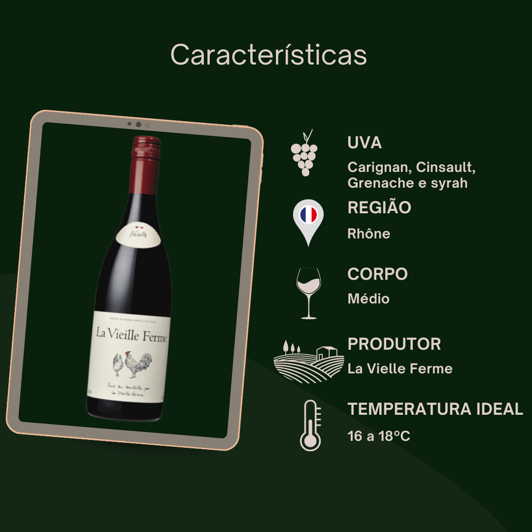 Desfrute do luxo e elegância desta safra de 2023 da icônica La Vieille Ferme, um vinho tinto francês exclusivo. Com notas de frutas negras e especiarias, este blend refinado é perfeitamente equilibrado e ideal para acompanhar qualquer refeição sofisticada. Permita-se o prazer de um verdadeiro vinho de luxo.
